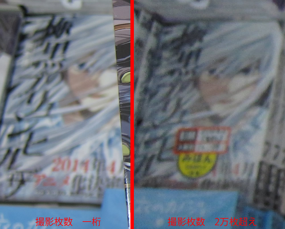 デジカメ(コンデジ)の撮影枚数が増加したときの、画像の劣化例。使い始めと2万枚越えの比較。